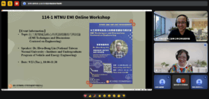 國立臺灣師範大學教學發展中心於9月23日舉辦「英語授課知能工作坊」,主題為「以工程領域為核心的英語授課技巧與討論」,邀請本校車輛與能源工程研究所暨學士學位學程劉華棟副教授,分享EMI (English as a Medium of Instruction) 授課的實務經驗,吸引147人線上參與。