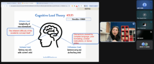 Su-Ling顧問在工作坊中首先指出,在全英語授課環境中,當學生面臨不熟悉的專有名詞,且教師在課堂上使用過於複雜的句構、語速過快或簡報內容過於密集時,都會造成學生學習上的困難。她提到,這會使學生將大部分的腦力與注意力消耗在理解語言和句子結構,而無法對於課堂內容進行深度思考。