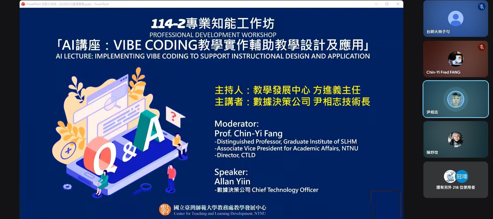 為推動數位轉型,打造AI時代教學新生態,國立臺灣師範大學教學發展中心於3月25日辦理專業知能工作坊,邀請數據決策公司尹相志技術長,以「Vibe coding 教學實作輔助教學設計及應用」為題,詳盡解析AI在未來教學方面的應用,吸引超過240位師生線上參與。