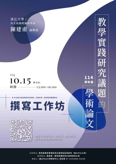 - 主題:教學實踐研究議題的學術論文撰寫工作坊