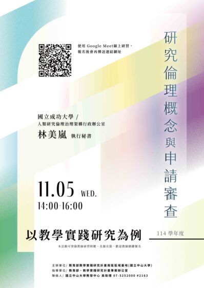- 主題:研究倫理概念與申請審查-以教學實踐研究為例