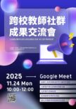 國立臺北教育大學執行教育部114年度教學實踐研究計畫區域基地計畫,為健全跨校教師跨領域發展支持網路,凝聚北區各大專院校教學實踐研究計畫教師及相關人員共識,展現本年度跨校教師社群執行成果,特辦理本次活動。 活動資訊 主題:跨校教師社群成果交流會。 時間:114年11月24日(一)上午10時至12時。 形式:Google Me...